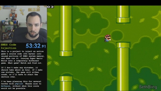 YouTube user SethBling has managed to inject Flappy Bird code into Super Mario World by taking advantage of several glitches. This is particularly notable, as no person has done this sort of exploit in the past. It’s a bit complicated, but you can see how the full process was accomplished below.