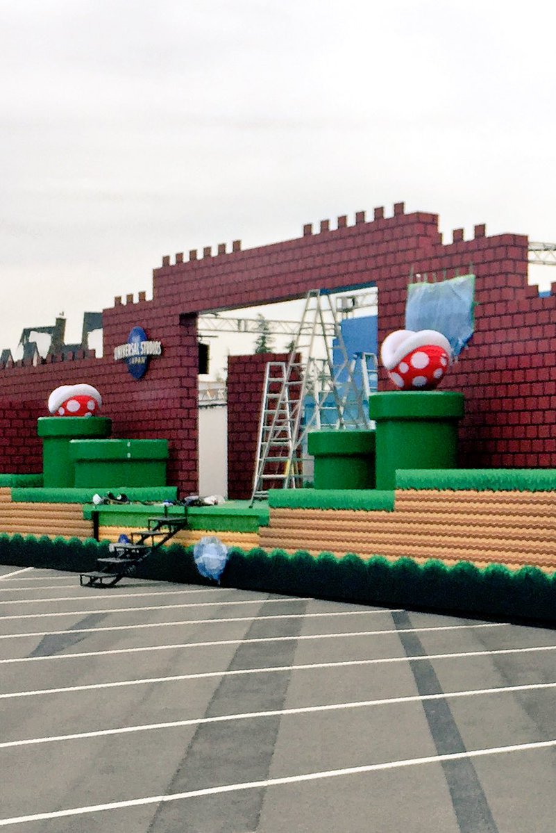 Original: It was assumed that construction on Super Nintendo World was just starting a little over a month ago. That’s now official, with the first true photos emerging today. It’s obviously very early on, but construction images show Warp Pipes and Piranha Plants plus brick walls.