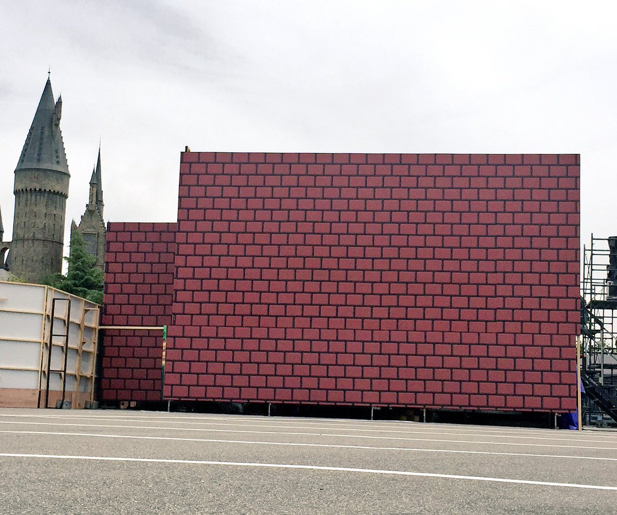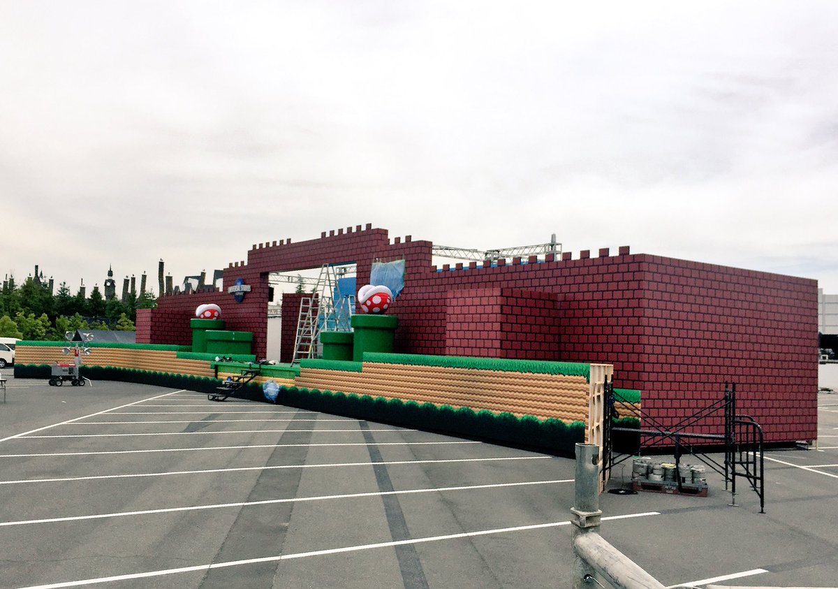 Update: Rather than photos of the actual Super Nintendo World, what we may have here instead is a stage of sorts being prepared for an upcoming event. One of the photos also appears to have the word “Grand” hidden in the back. In any case, these might not be construction photos.