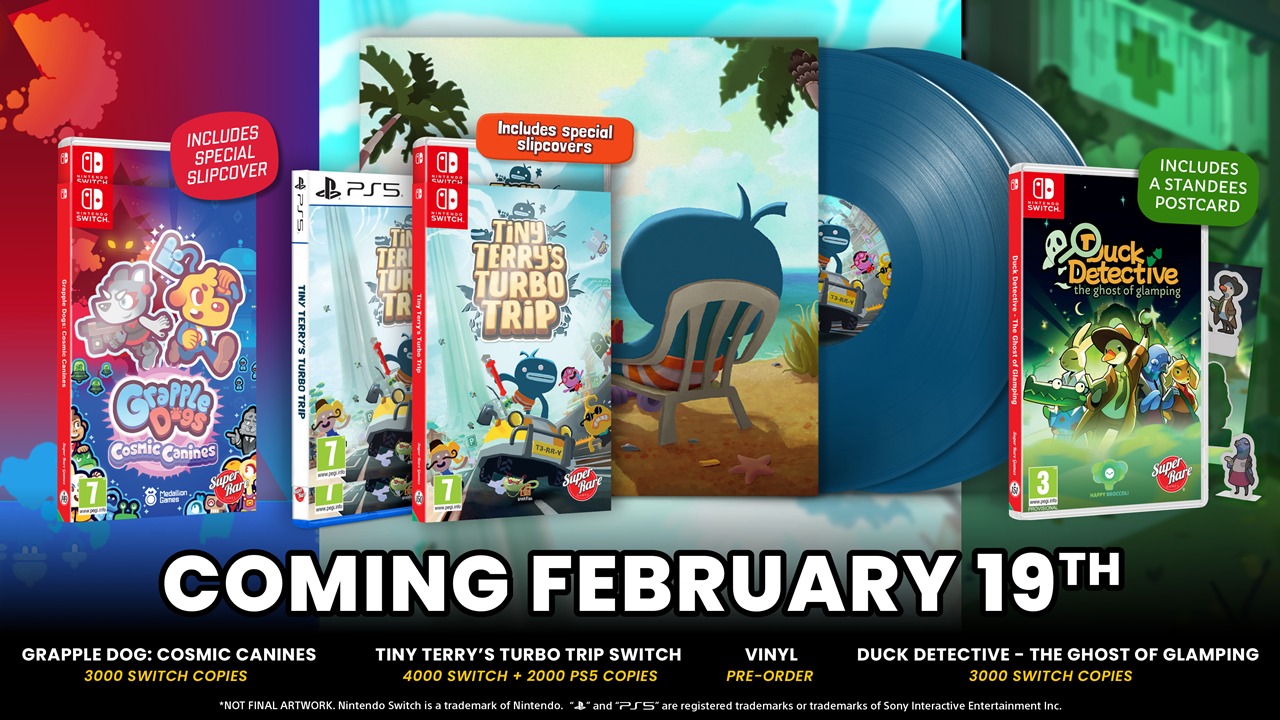 To celebrate its eighth anniversary and 150th release, Super Rare Games has announced three new physical releases on Nintendo Switch. These are Grapple Dogs: Cosmic Canines, Tiny Terry’s Turbo Trip, and Duck Detective: The Ghost of Glamping.