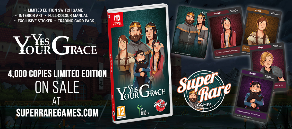 Previously an eShop exclusive, the kingdom management RPG Yes, Your Grace will be getting a physical release. Super Rare Games has partnered with No More Robots and Brave at Night on the boxed version.