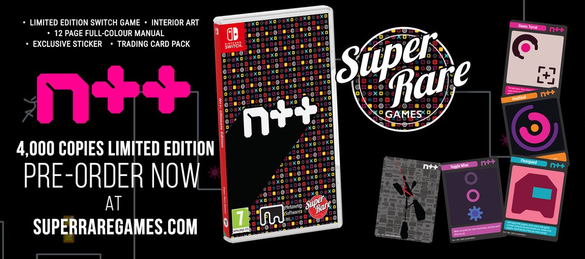 Super Rare Games has opened pre-orders for the physical version of N++ Ultimate Edition. Secure yours here. Copies should ship in a couple of weeks.