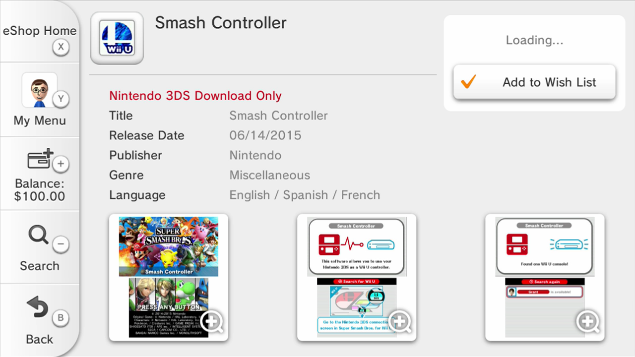 Super Smash Bros. for Wii U allows players to connect a 3DS system and use it as a controller. Prior to today, users needed to have a copy of Smash Bros. on 3DS in order to use the feature. An app has now been released with the same functionality, meaning you don’t actually need the game. Pricing is set at $0.99.