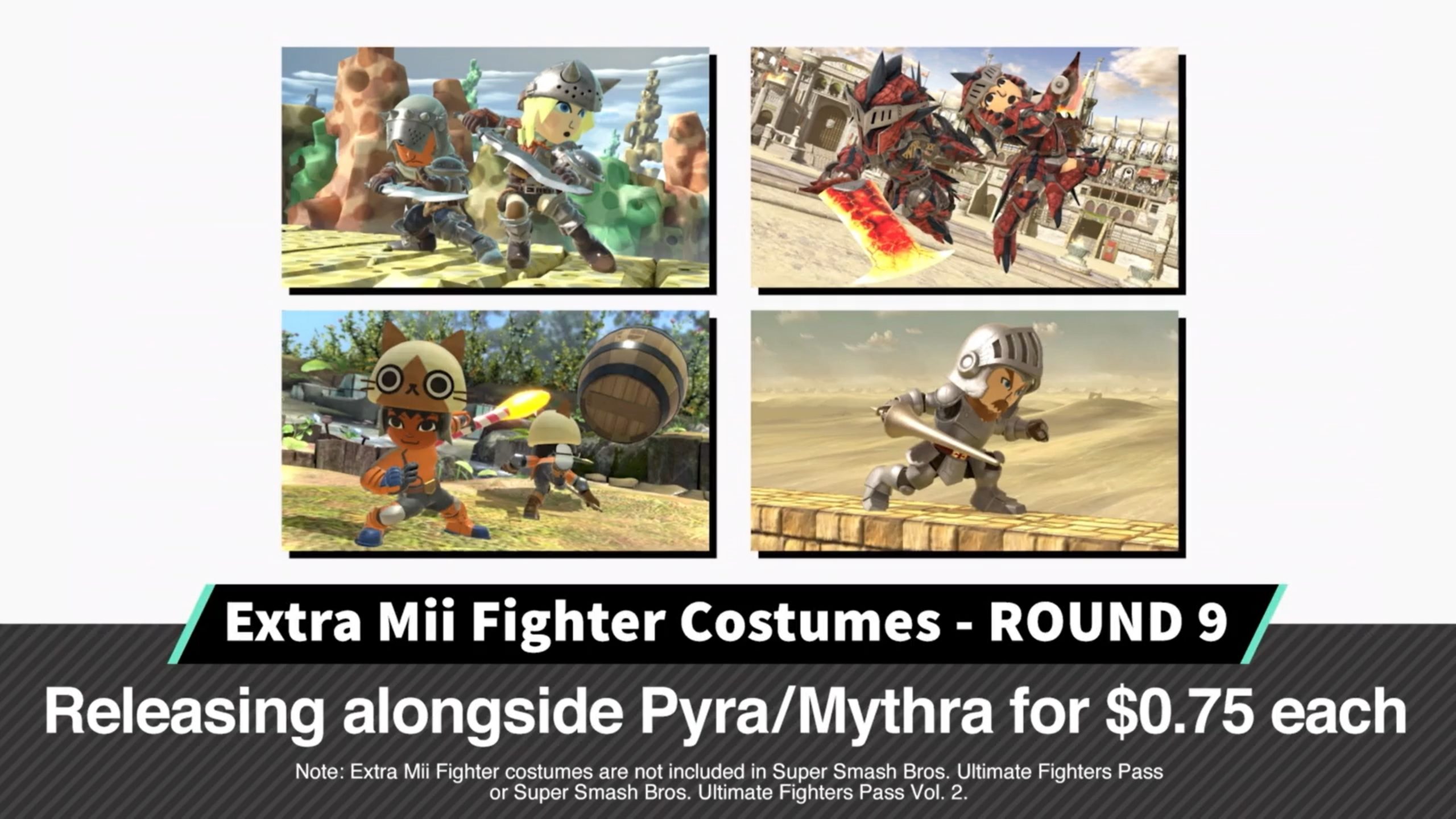 When Pyra and Mythra join Super Smash Bros. Ultimate, they won’t be the only new DLC for the game. During a presentation today, director Masahiro Sakurai revealed the latest set of Mii Fighter costumes.