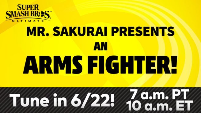 Smash Bros. Ultimate – ARMS character to be revealed on June 22 during presentation with Sakurai