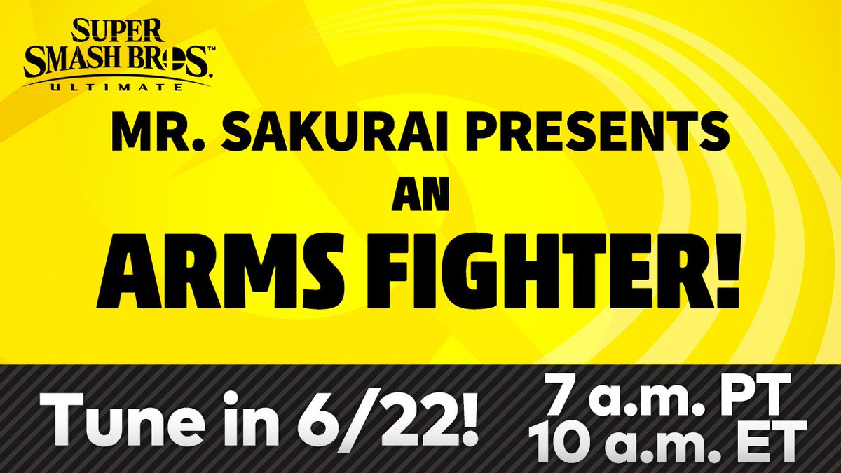Nintendo has announced a new presentation for Super Smash Bros. Ultimate which will finally reveal the new ARMS character coming to the game. Director Masahiro Sakurai will be hosting the event.