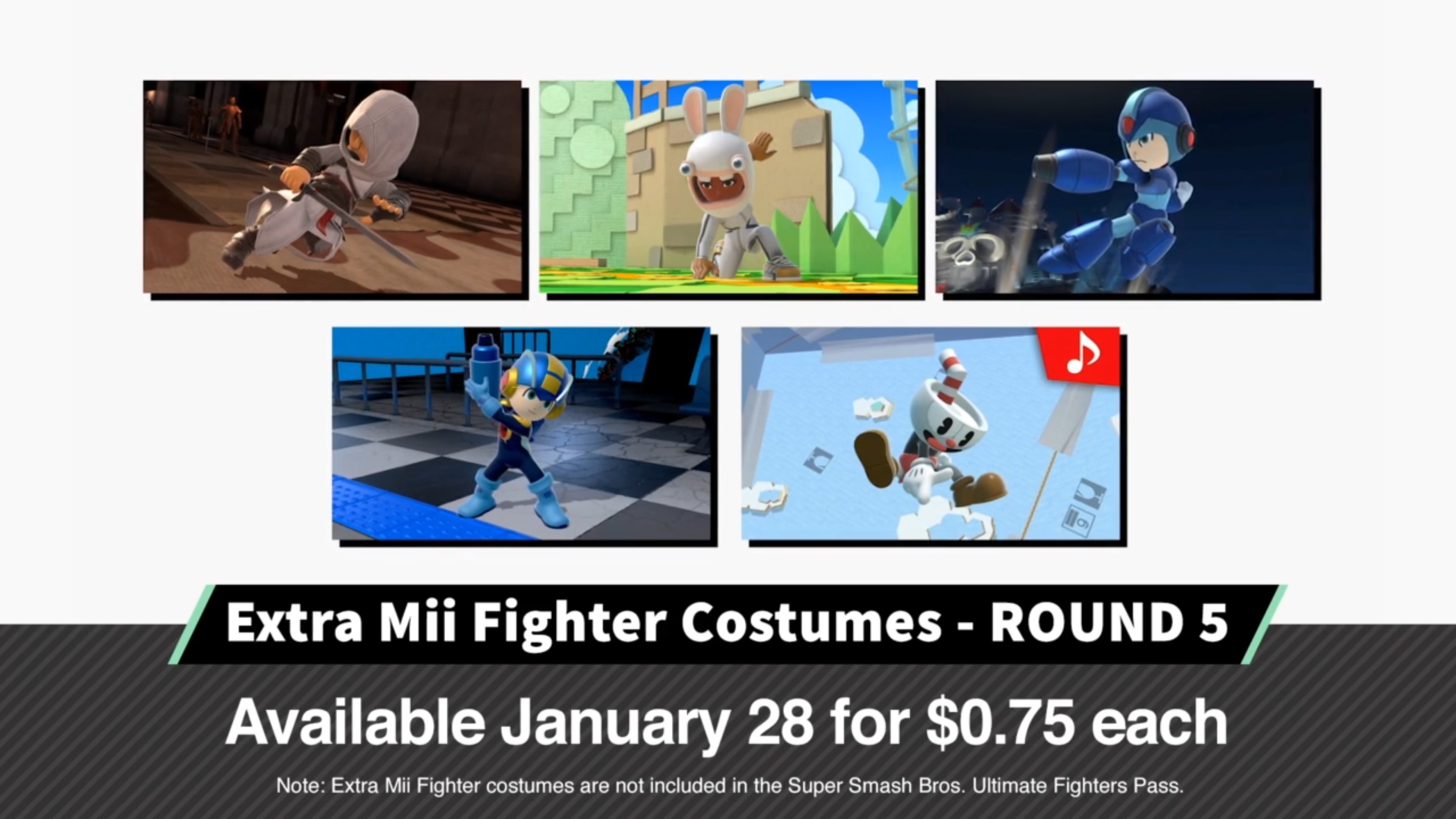 Smash Bros. Ultimate reveals new Mii Fighter costumes from Assassin’s Creed, Rabbids, Cuphead, Mega Man