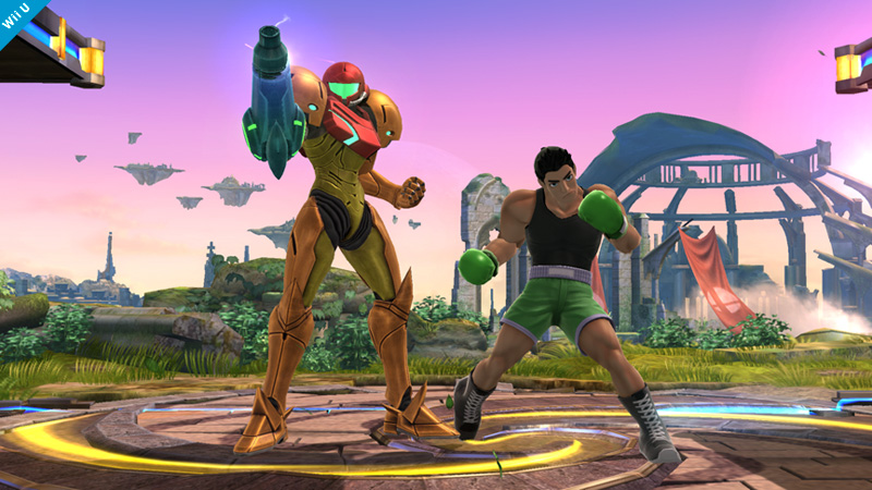 Pic of the day. As shown in Little Mac’s debut video, here is the height difference between Samus and Little Mac. He’s used those mighty green gloves to punch out many challengers bigger than himself.