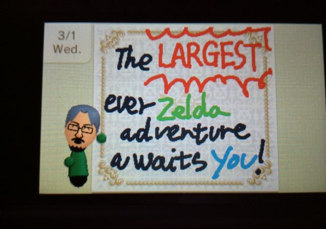 If you boot up SpotPass, you should see a message waiting for you from Zelda producer Eiji Aonuma. It was actually sent out on March 1, but it seems to have went mostly unnoticed.