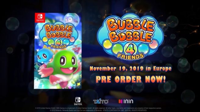Taito’s classic series Bubble Bobble is returning with a brand new entry only on Switch. Revealed today, Bubble Bobble 4 Friends is coming to Switch on November 19 in Europe and Q1 2020 in North America.