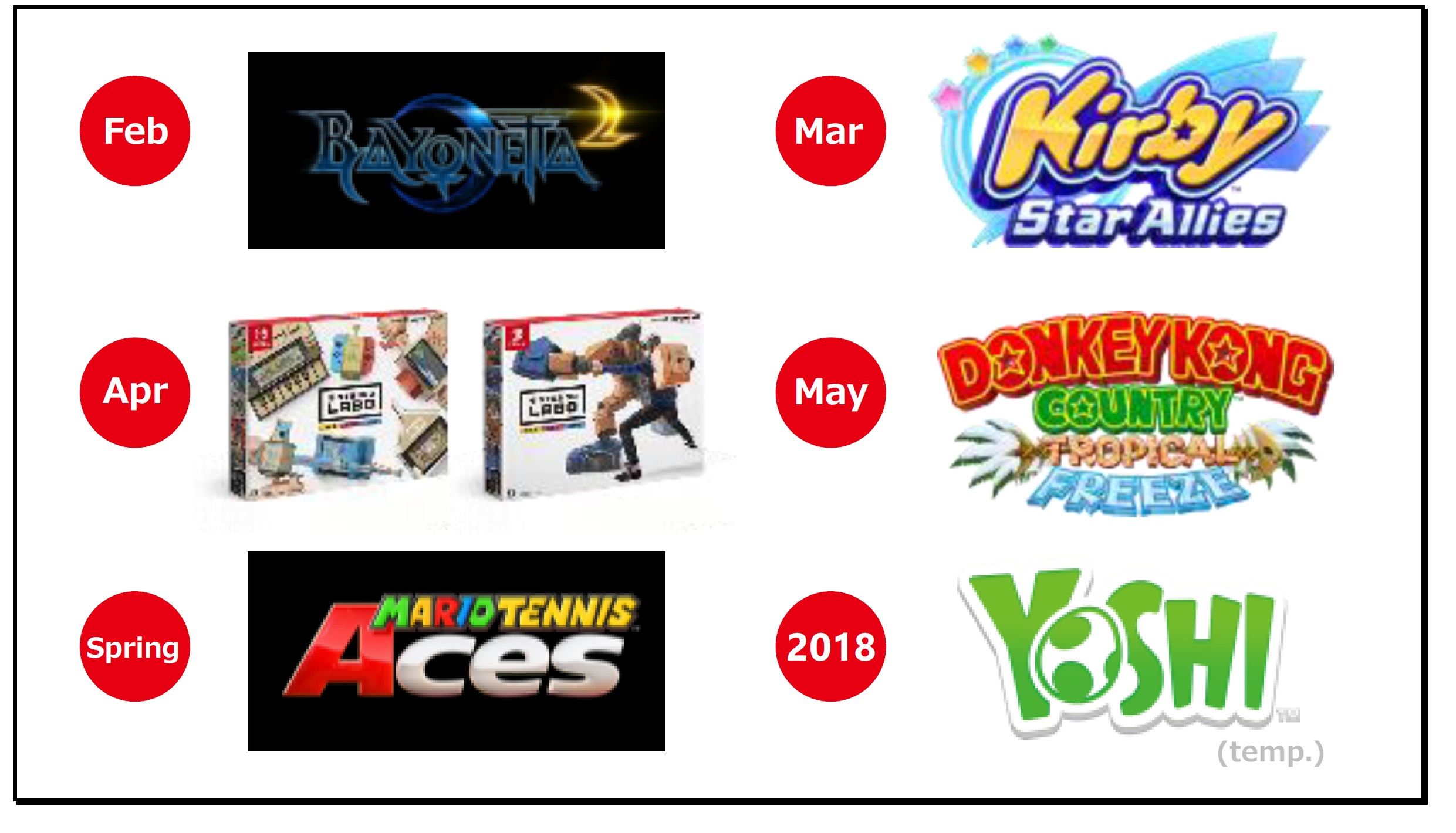 We believe that the availability of software titles will continue to accelerate as a result of the widespread acceptance of Nintendo Switch by other software publishers. In addition to the software titles you see here, a string of titles in a wide variety of genres will be released in the future.