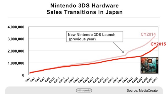 In 2014, we were able to invigorate the market a little earlier than last year-end sales season with the launch of New Nintendo 3DS and the release of titles such as Super Smash Bros. for Nintendo 3DS and Pokémon Omega Ruby/Alpha Sapphire. On the other hand, in 2015, despite a little late start off compared to the previous year, we saw a hardware-driving effect of software such as CAPCOM?CO LTD.’s Monster Hunter X (Cross), and there was momentum as strong as the previous year in the year-end sales season growth.