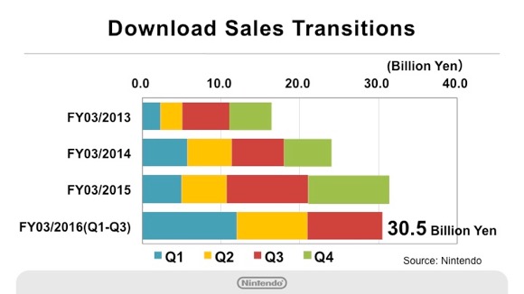Total download sales from the first quarter to the third quarter totaled 30.5 billion yen. This increase is mainly due to add-on content inside games.