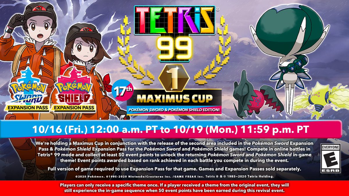 Nintendo has just announced the 17th Maximus Cup for Tetris 99. There’s no new theme here, but if you previously missed out on the design for Pokemon Sword and Pokemon Shield, you have a second chance of earning it. Simply collect 50 event points to unlock the theme – if you haven’t already.
