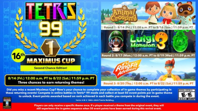 Tetris 99 – 16th Maximus Cup announced, another chance to earn past themes