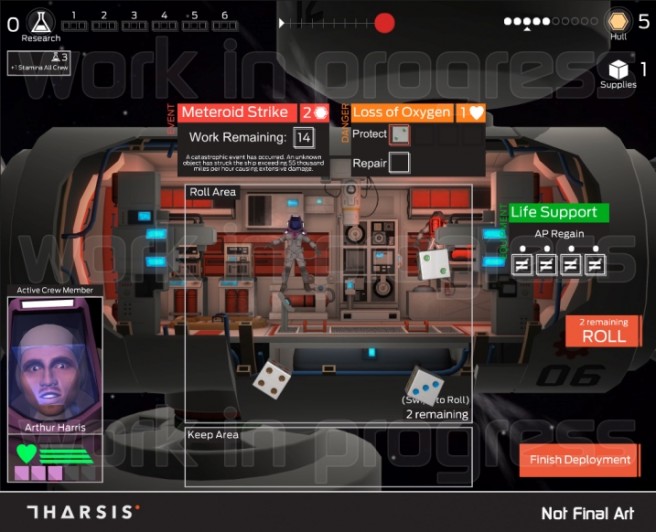 Tharsis is a turn-based, perma-death, realistic space strategy game. With dice. And cannibalism. It puts you in control of the first-ever mission to Mars, just as it’s struck by a meteor storm.