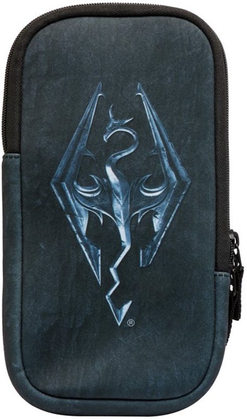 The case is a 3-piece protector featuring artwork from the game and designed to resemble worn metal armor right out of the Skyrim world. Nintendo and Bethesda has officially licensed the case.