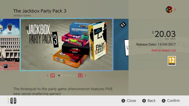 It won’t be much longer until The Jackbox Party Pack 3 graces the Switch eShop. On the European store, the game now has a listing with an April 13 release date. It should cost €23.99 / £20.03.