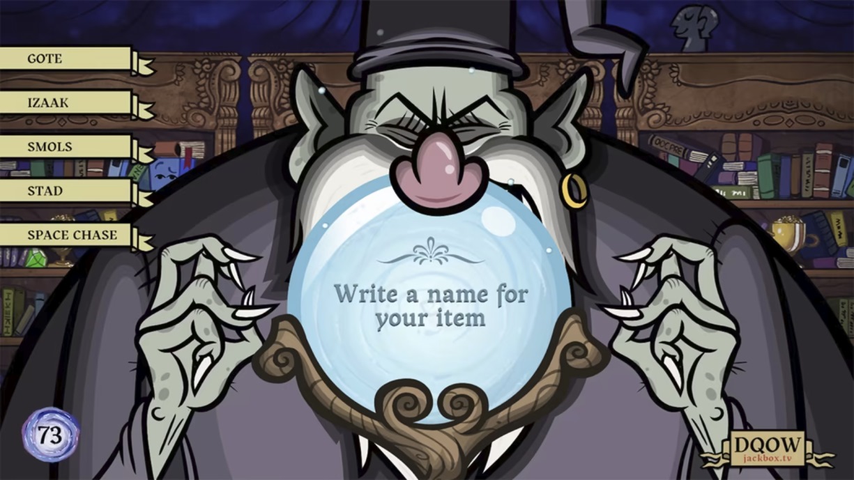 According to the studio, this is “a joke-driven writing game where you win by building funny backstories for unusual objects.” Players are turned into frogs by the wizard Nikolas Knackalus, but he’ll turn them back if they can turn the most profit by reselling antiques.
