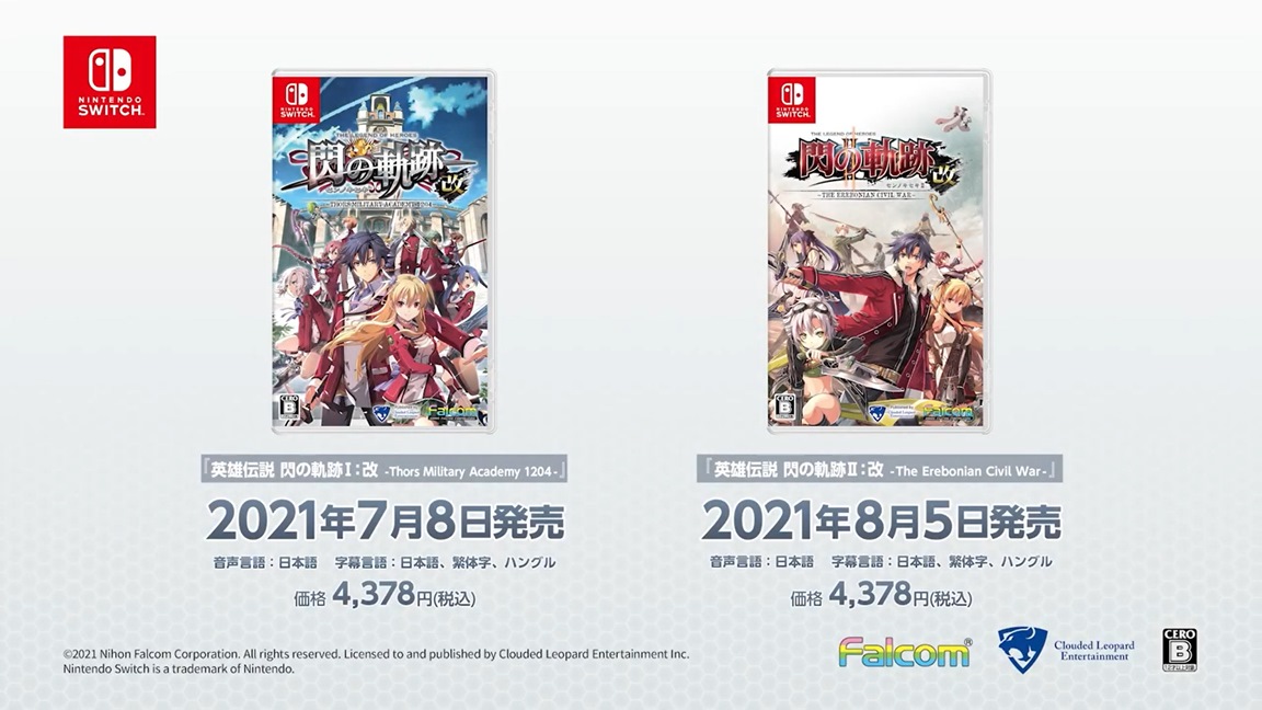 Additionally, it would appear that Clouded Leopard Entertainment will release Switch versions of The Legend of Heroes: Zero no Kiseki on February 18, 2021 and The Legend of Heroes: Ao no Kiseki on April 22, 2021 in Korea, with no current word of a Japanese release.