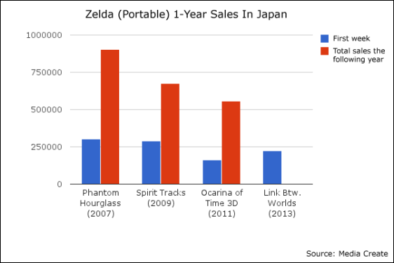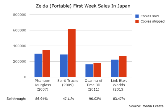 An overview of Zelda: A Link Between Worlds’ initial Japanese sales