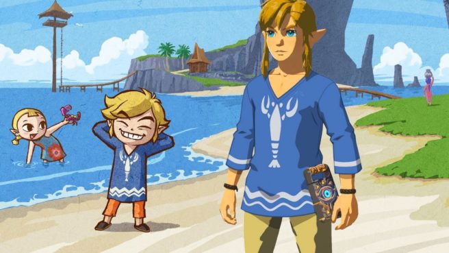 We’ve slowly been learning more about the next round of DLC. At Japan Expo in France last month, series producer Eiji Aonuma confirmed that the shirt Link starts out with in The Wind Waker will be added. That’s not all though. In a new blog post on Breath of the Wild’s Japanese website, Aonuma teased that other Zelda-related equipment will also be offered.