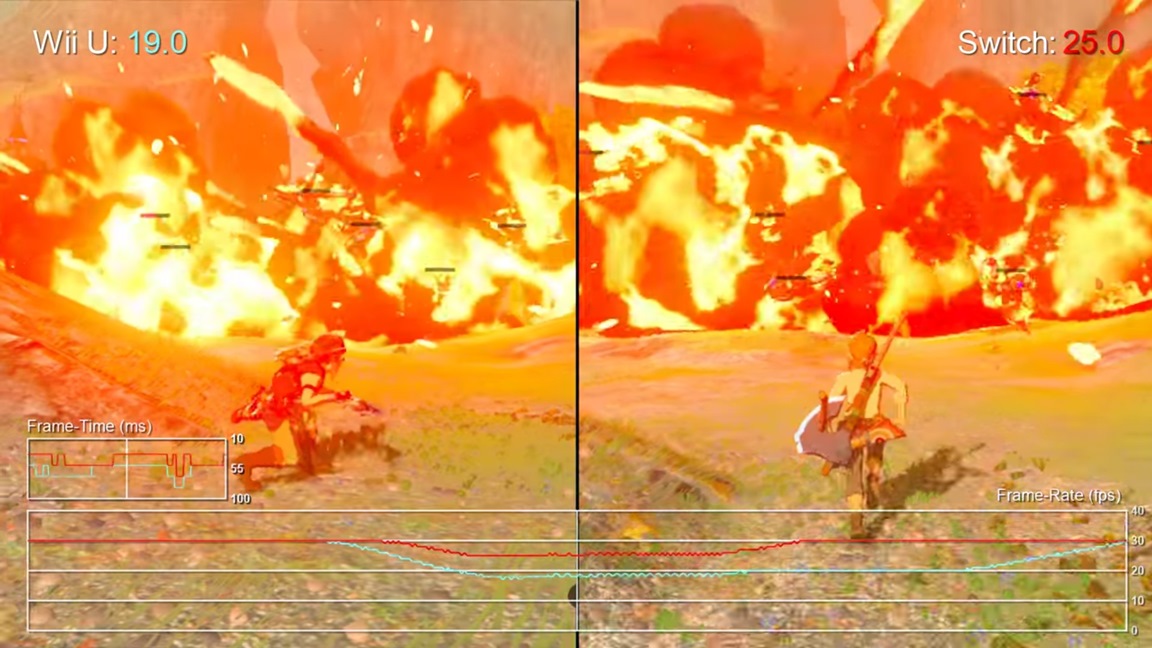 Zelda: Breath of the Wild Switch vs. Wii U frame rate stress tests