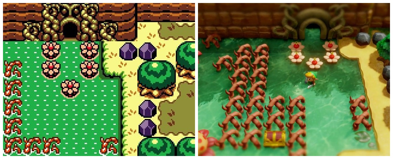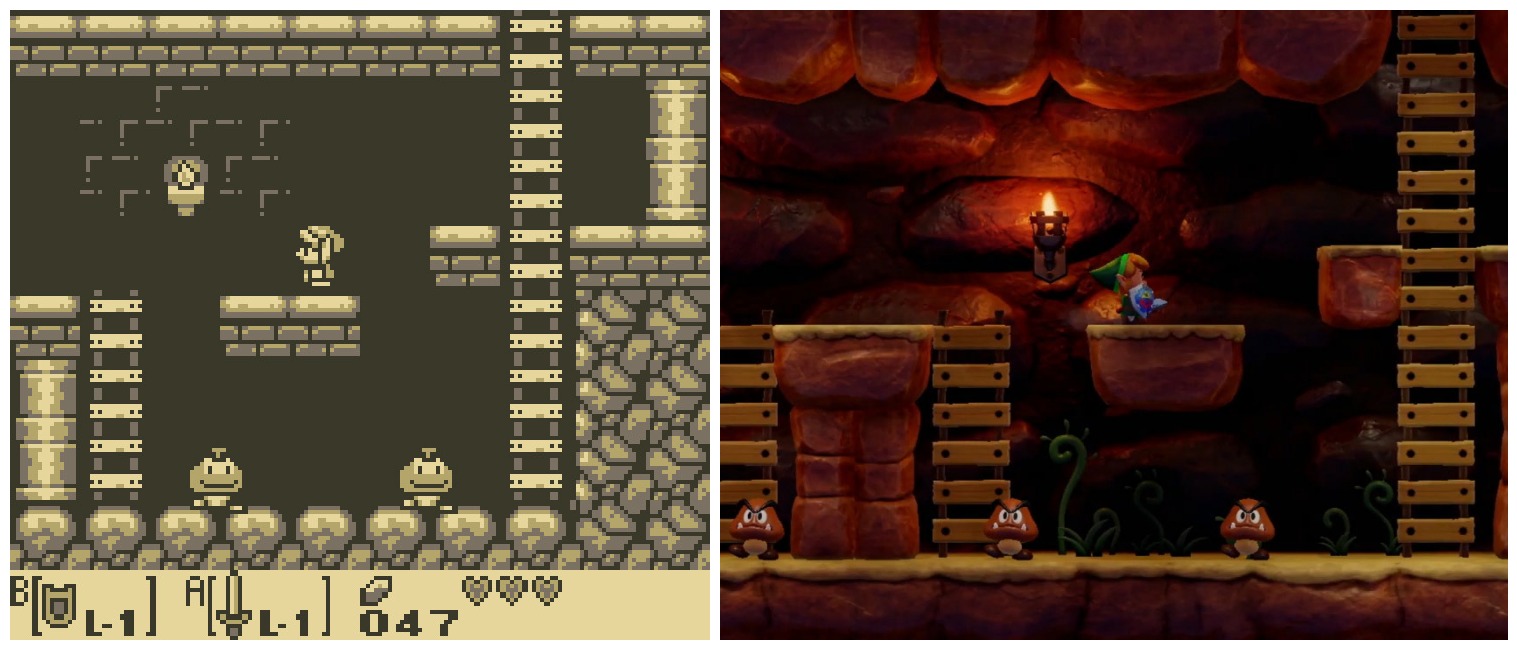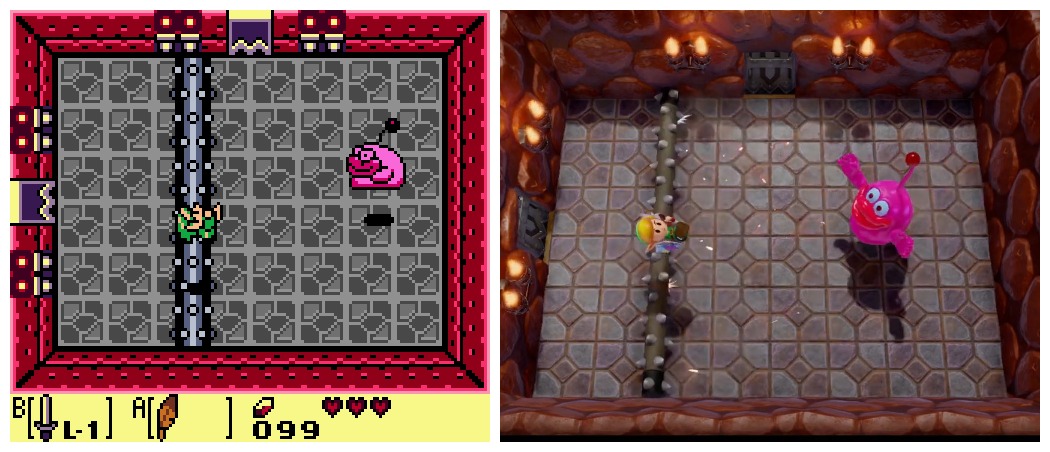 Today’s Nintendo Direct ended with the announcement that The Legend of Zelda: Link’s Awakening is seeing a remake on Switch. Well over 20 years later, the classic title is returning in a big way. Get a look at a few comparisons below showing how the Game Boy / Game Boy Color original stacks up to the new Switch version.