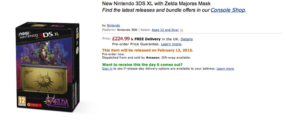 Amazon UK currently has The legend of Zelda: Majora’s Mask New 3DS XL available for pre-order.