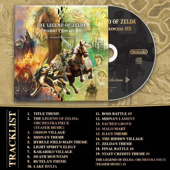 Nintendo has revealed the lineup of tunes included with The Legend of Zelda: Twilight Princess HD’s Sound Selection CD. The full listing is below.