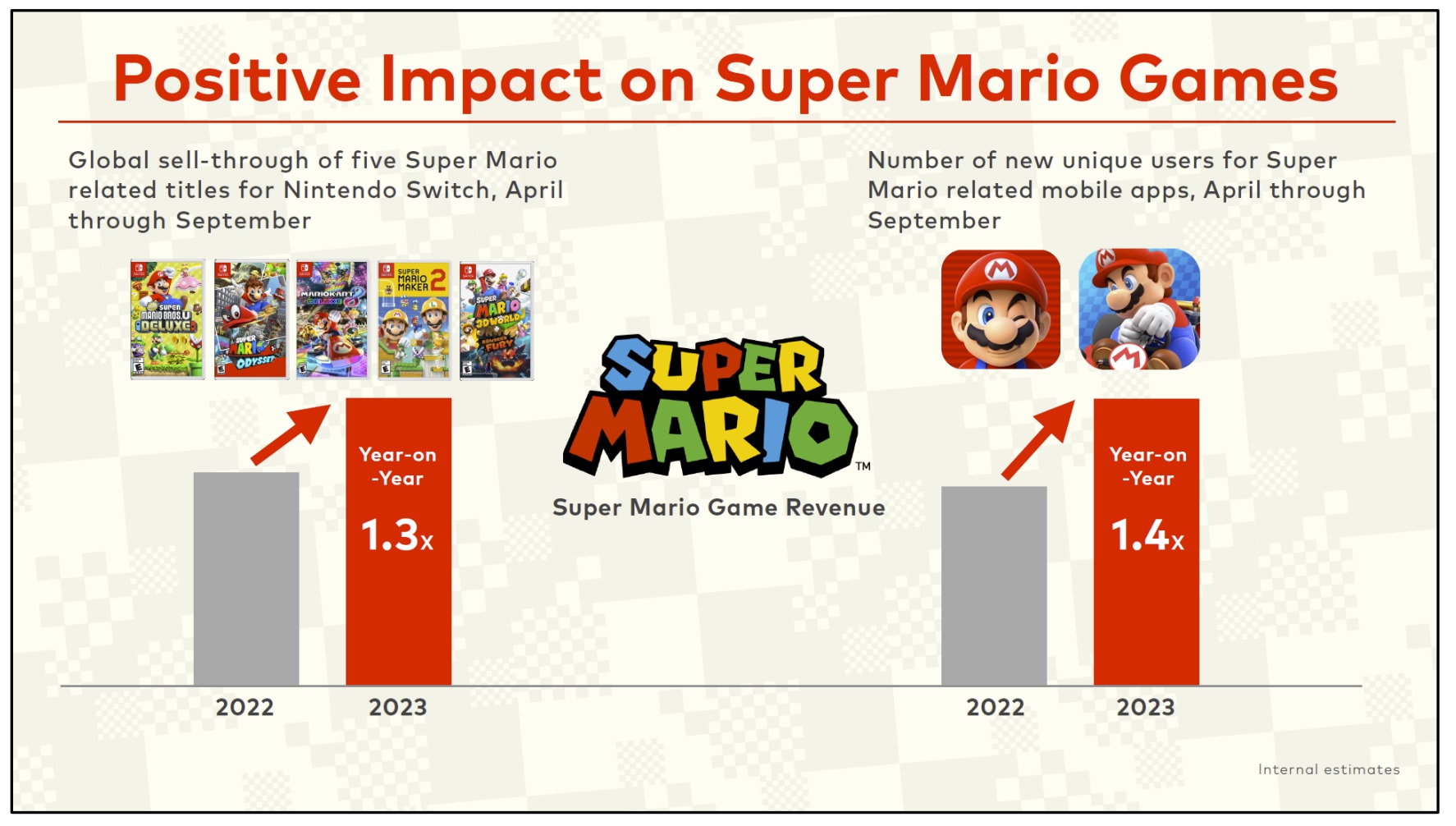 Nintendo spoke about the movie’s success and how “sell-through of evergreen (Switch) titles related to Super Mario from April through September increased appreciably year-on-year.” The Big N’s mobile apps and merchandise saw an increase as well.