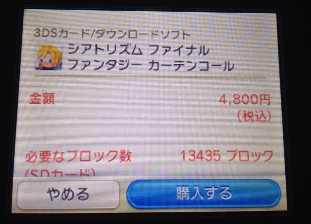 Theatrhythm Final Fantasy Curtain Call takes up 13,435 blocks on an SD card. How much does that amount to in terms of an actual file size? 1,680MB, or 1.64GB.