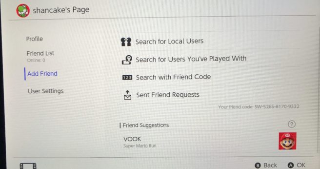 Don’t be entirely disappointed though. Switch does let you search for users nearby to add, and you can also search for those you’ve played with. It appears that Switch will also offer you friend suggestions based on who you’ve connected with previously in other Nintendo titles – such as the mobile release Super Mario Run.