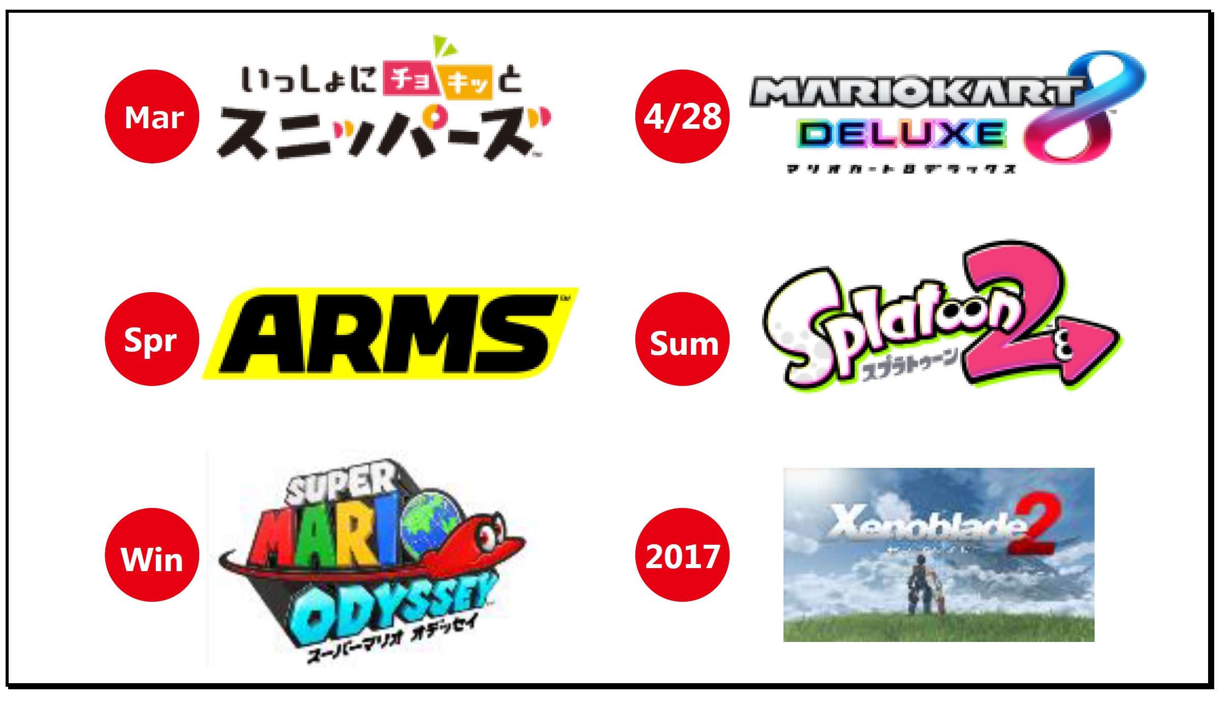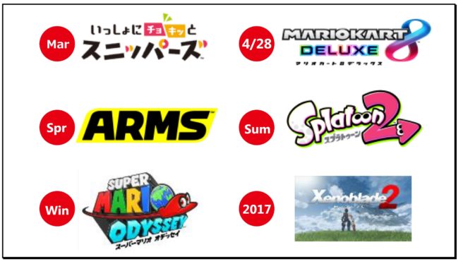 Our thinking in arranging the 2017 software lineup is that it is important to continue to provide new titles regularly without long gaps. This encourages consumers to continue actively playing the system, maintains buzz, and spurs continued sales momentum for Nintendo Switch.