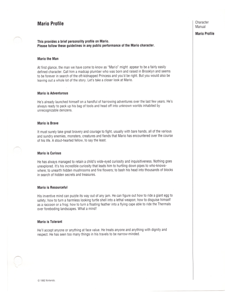 Another round of photos from the 1993 Nintendo Character Manual have been posted online.