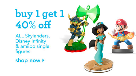 Buy 1, get 1 40% off amiibo, Disney Infinity, and Skylanders figures at Toys “R” Us