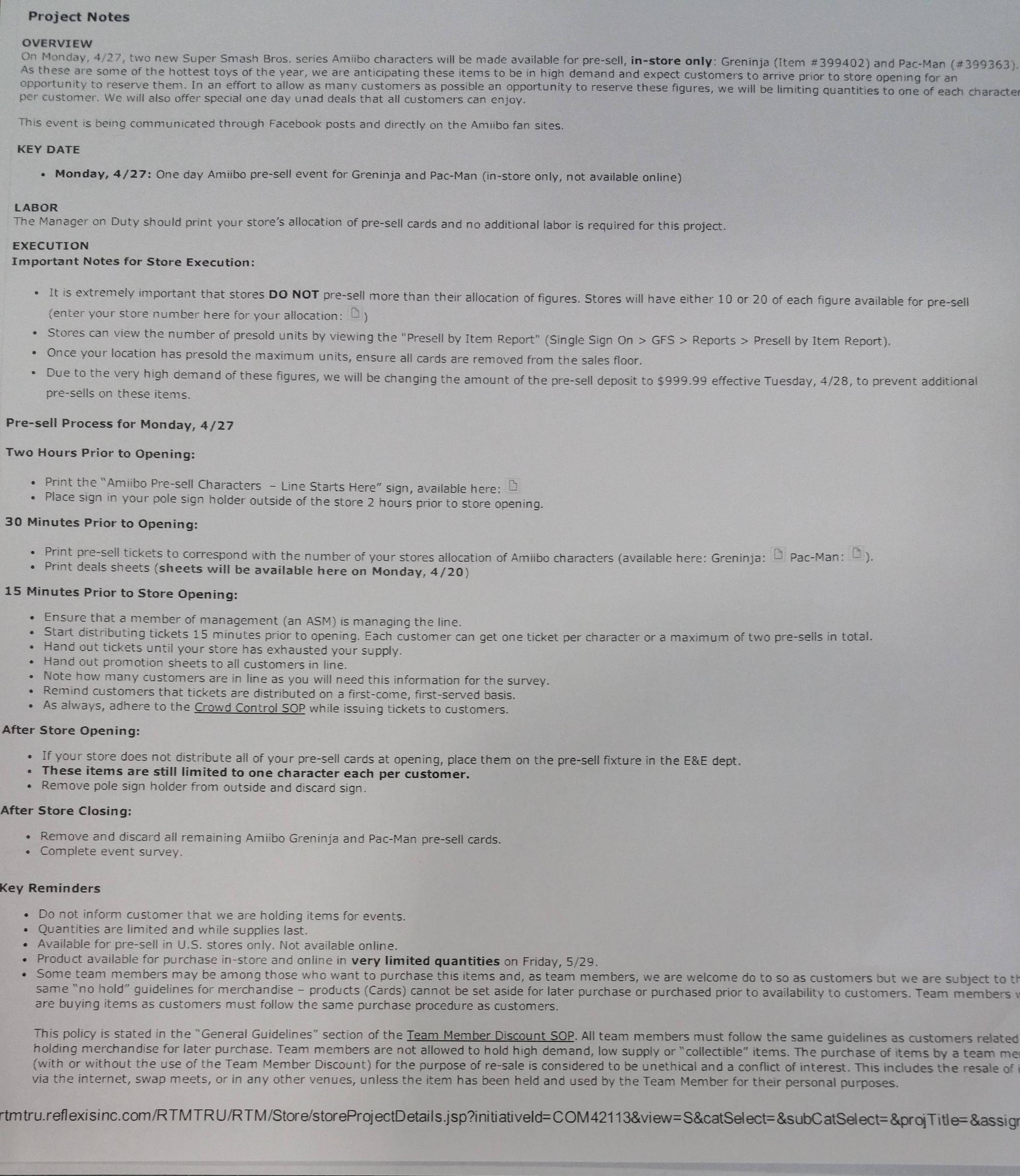 An internal document from Toys “R” Us reveals additional details about upcoming in-store pre-orders for the Greninja and Pac-Man amiibo.
