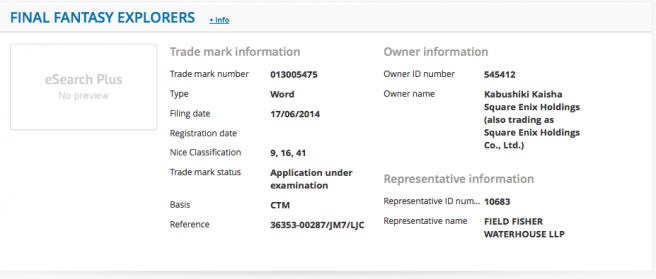 Final Fantasy Explorers trademarked in the US and Europe