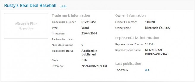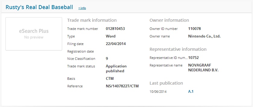 Rusty’s Real Deal Baseball may finally be heading to Europe. A trademark was recently spotted in the European database, hinting at an upcoming release. Nintendo submitted the filing this past Friday.