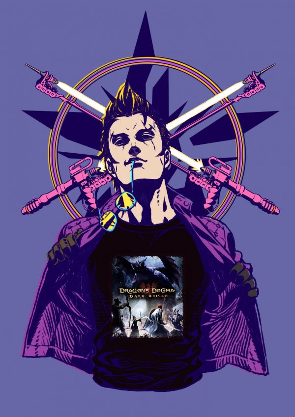 Following up on yesterday’s reveal of Travis Strikes Again: No More Heroes content getting into Dragon’s Dogma: Dark Arisen, a new t-shirt has now been confirmed for the former that features the latter.