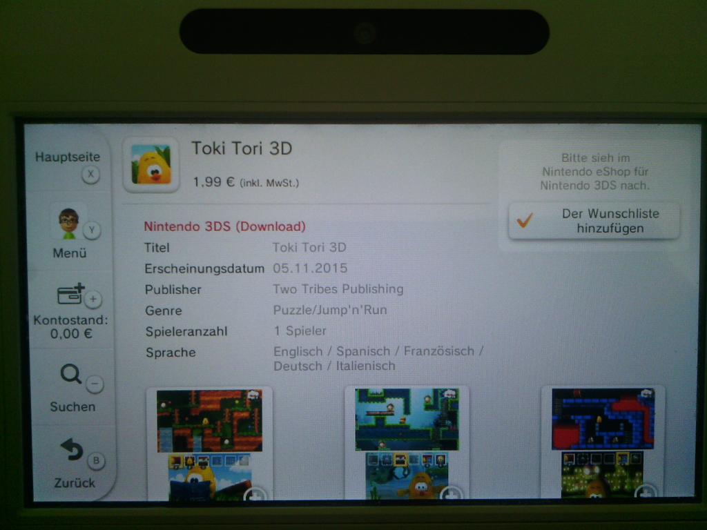 The new version of Toki Tori will be debuting in Europe soon. As revealed through an eShop listing, the 3DS eShop release is slated for November 5. It’ll be pretty cheap – the asking price is only €1.99.