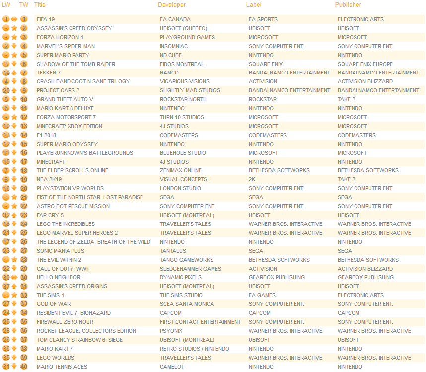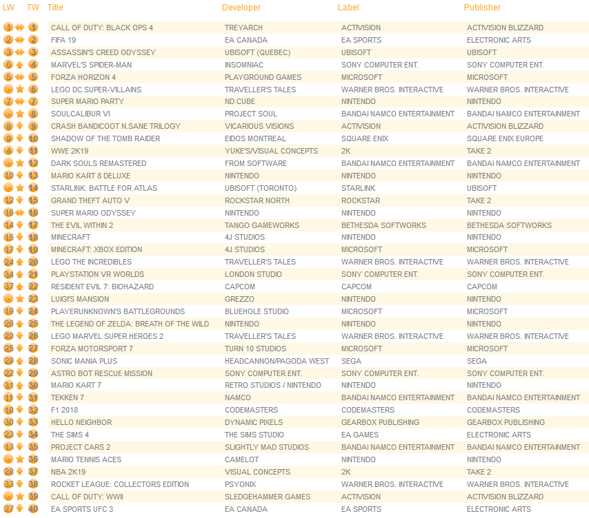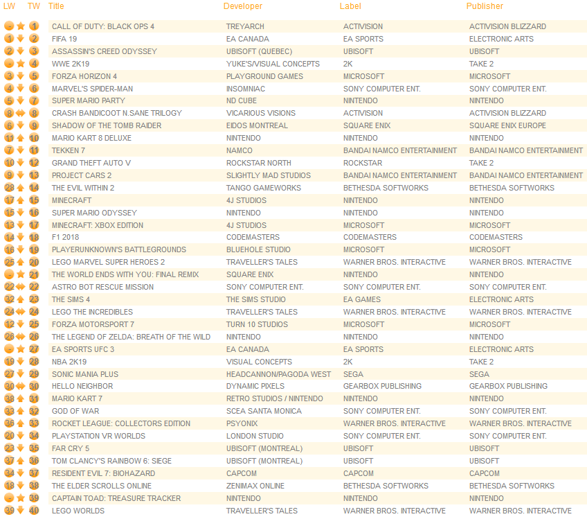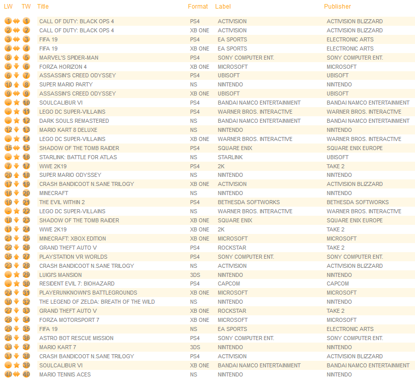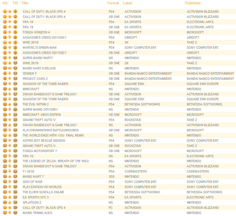 UK software sales (Week ending 10/20/2018) – Switch/Wii U/3DS charts