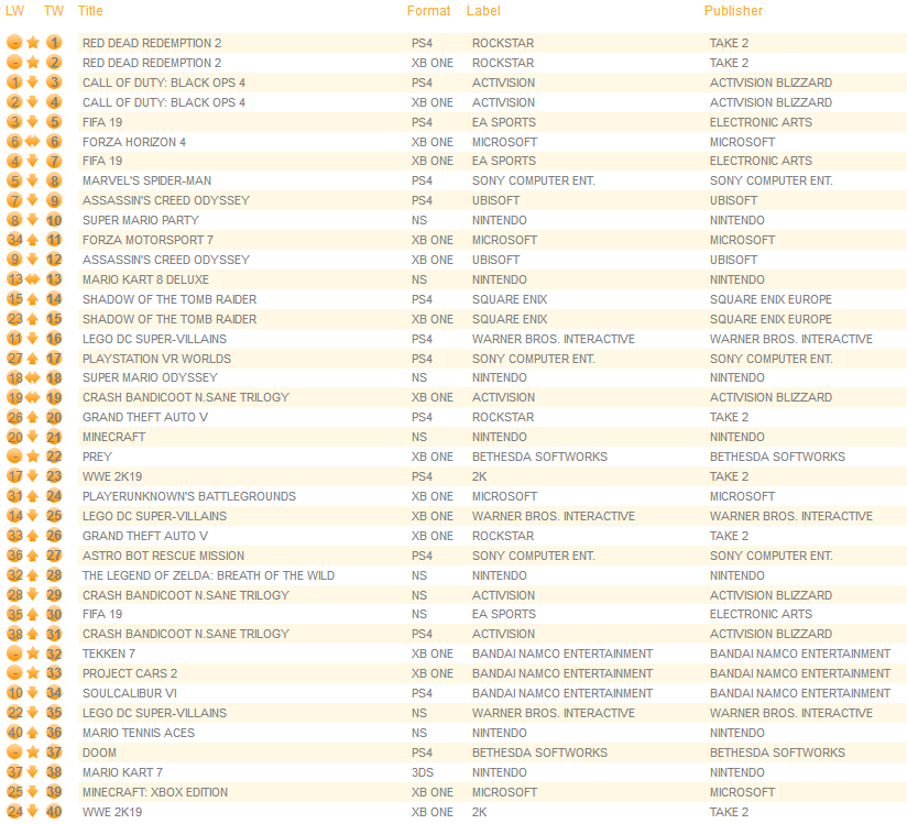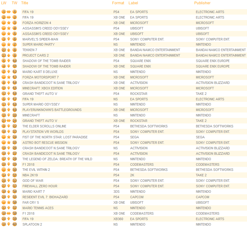 UK software sales (Week ending 10/27/2018) – Switch/Wii U/3DS charts