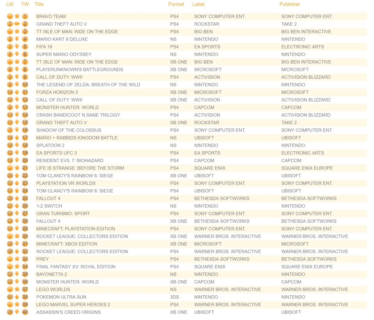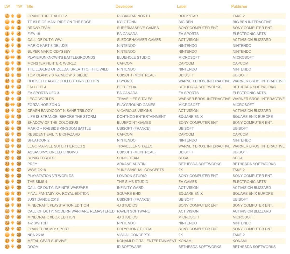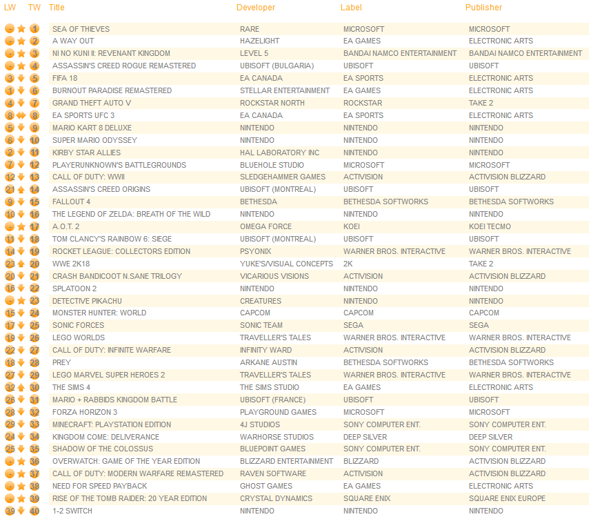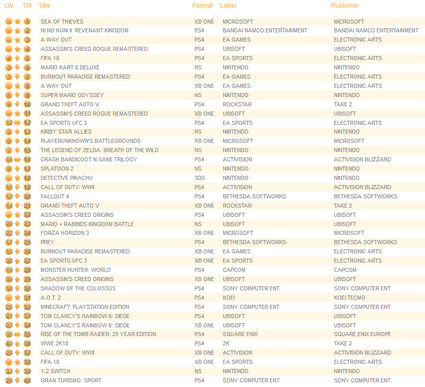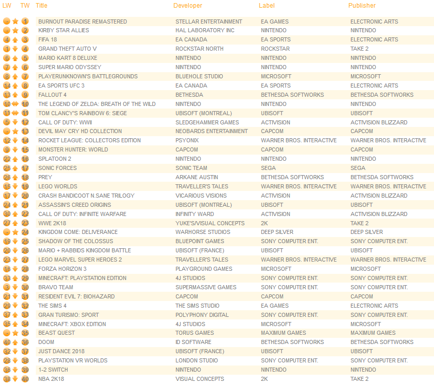 A new round of data is in from the UK that shows the top 20 best-selling games for 2017.