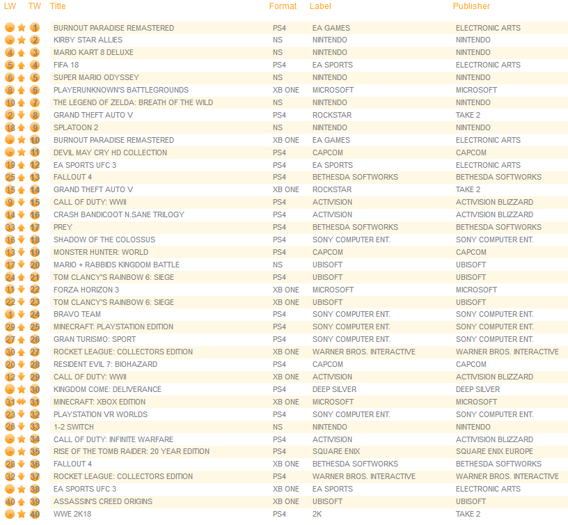UK software sales (Week ending 3/10/2018) – Switch/Wii U/3DS charts