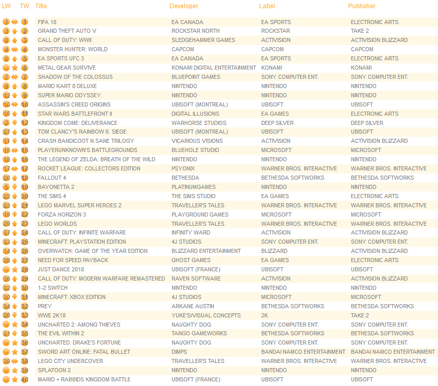 The latest UK sales were reported earlier today. Following up on the initial news, we have some extra tidbits about FIFA 18 and Bayonetta 2 on Switch.