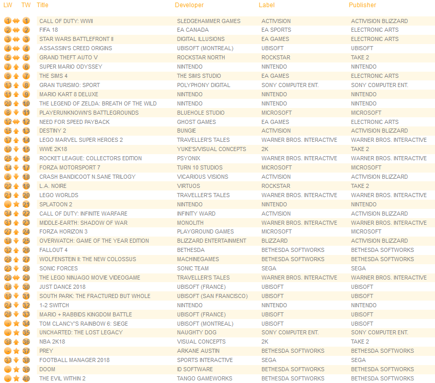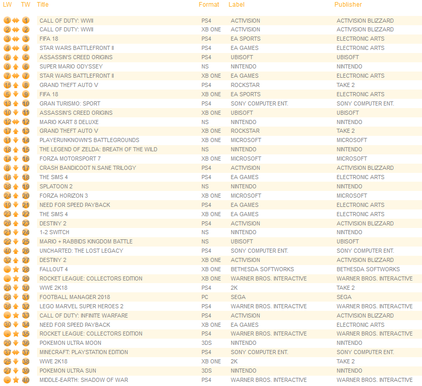 UK software sales (Week ending 12/30/2017) – Switch/Wii U/3DS charts