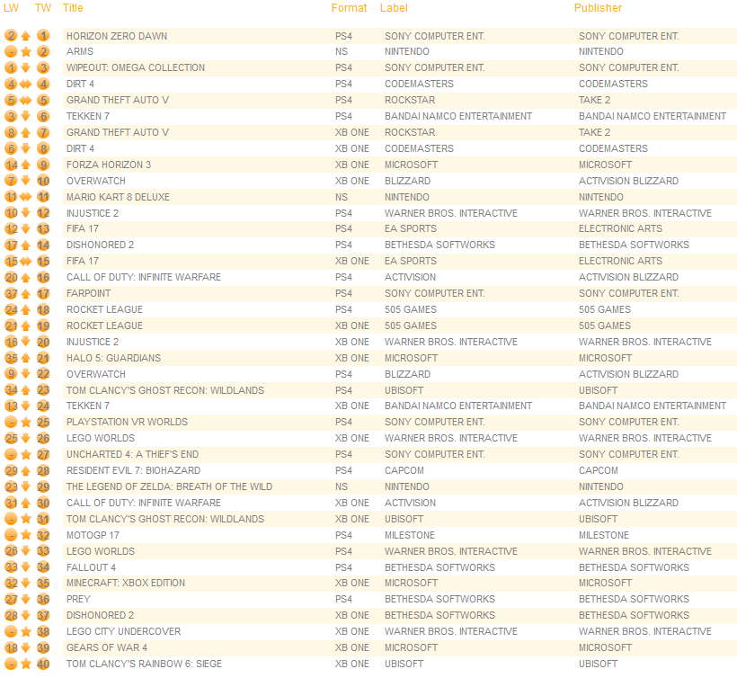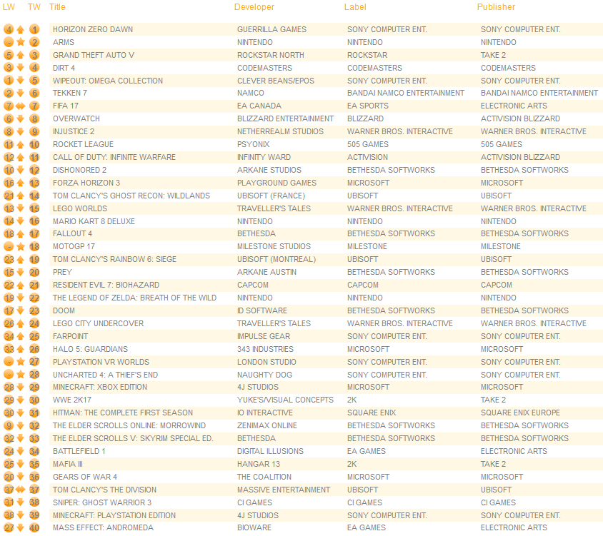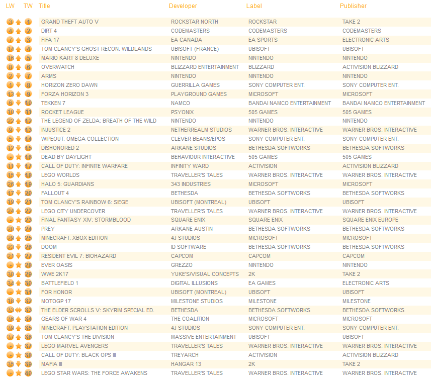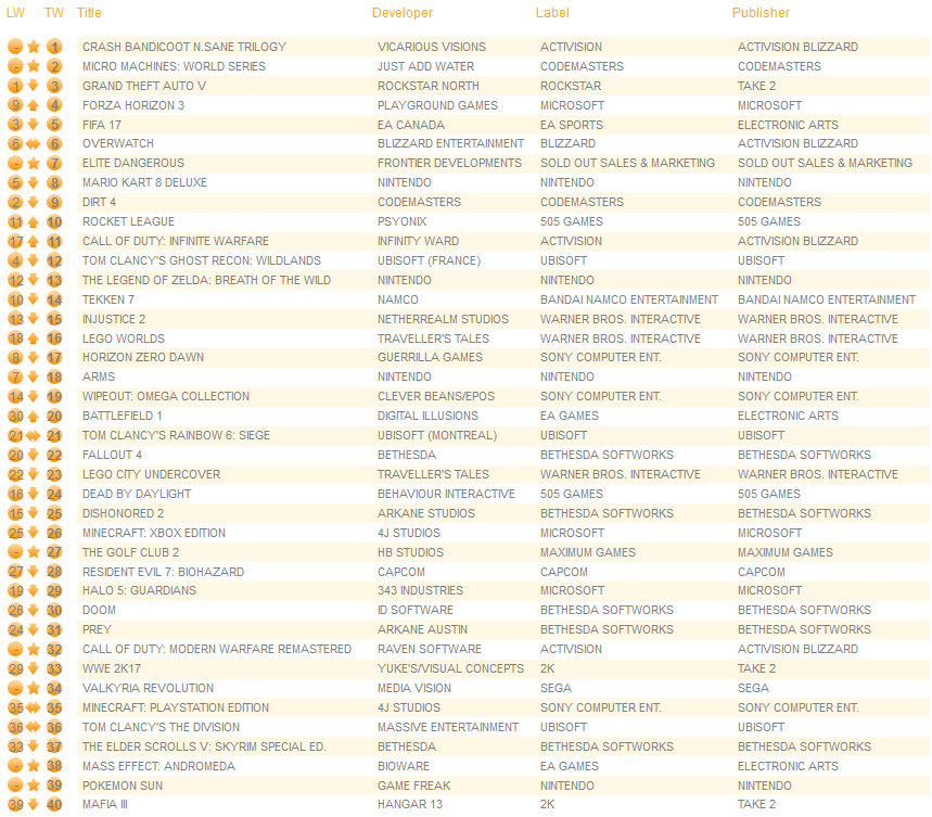 GamesIndustry has shared a listing of the best-selling games in the UK for the month of May 2017. Have a look at the full results below.