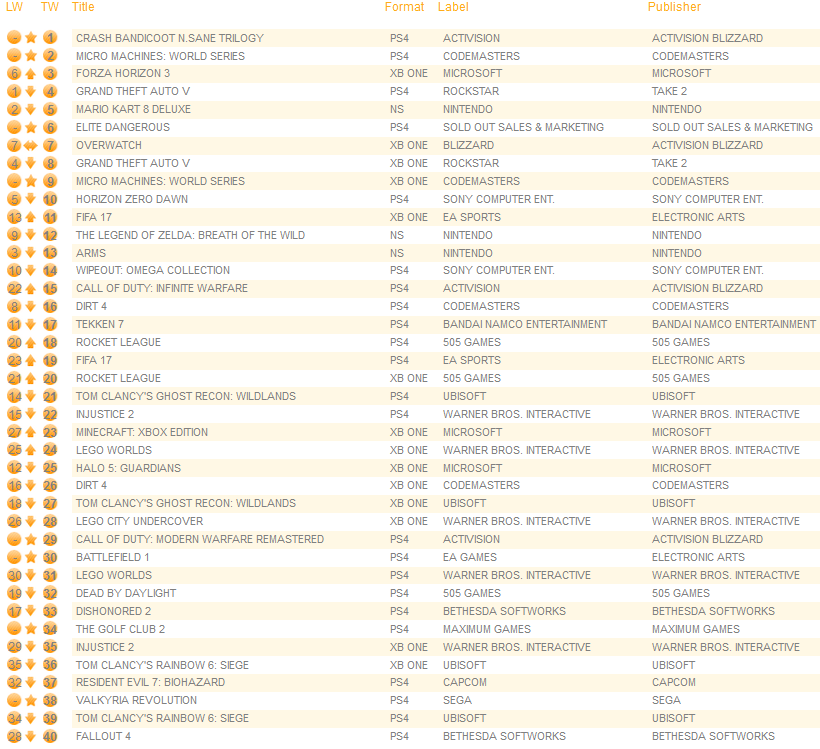UK software sales (Week ending 06/10/2017) – Switch/Wii U/3DS charts