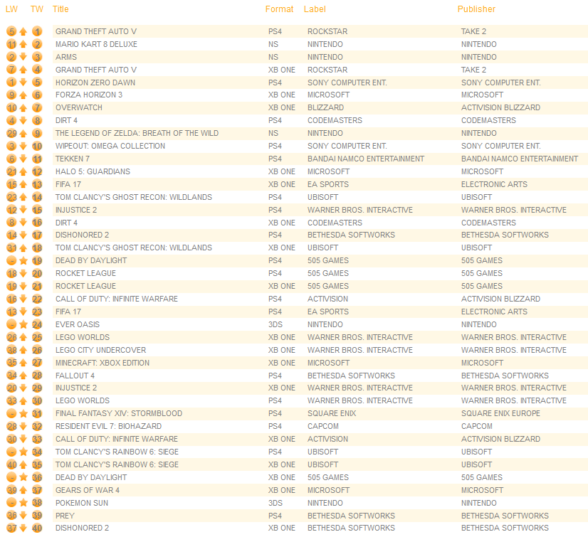 UK software sales (Week ending 06/17/2017) – Switch/Wii U/3DS charts